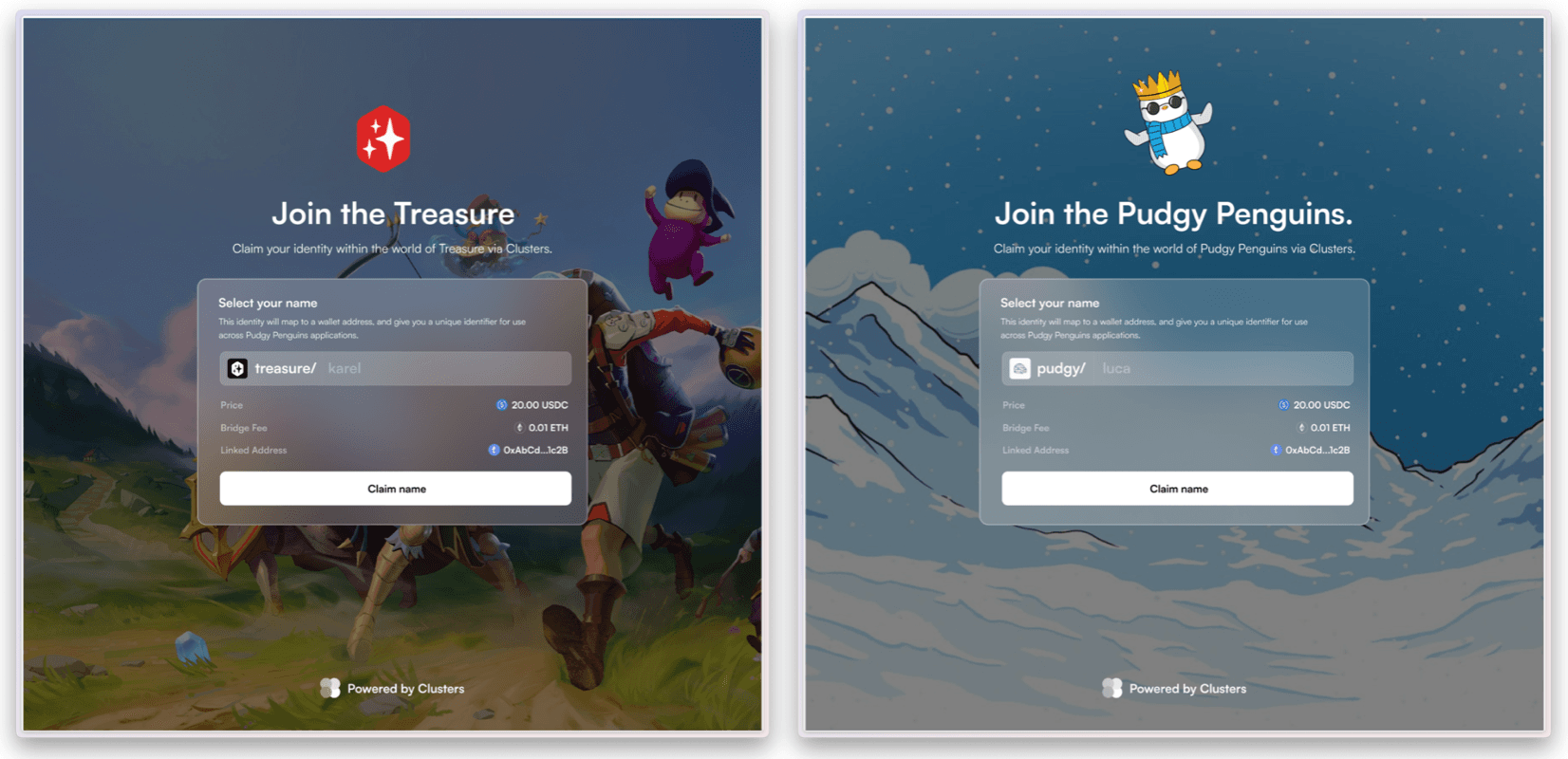 Clusters is a universal namespace. All the blockchains, all your wallets, one name. So if I'm foobar, my clusters name is foobar/ All my wallets are then suffixed individually under this universal name, just like a website URL. My ethereum wallet could be foobar/eth, my solana wallet is foobar/sol, my bitcoin wallet is foobar/ordinals. I can also have multiple wallets on the same chain, for example foobar/defi and foobar/nfts can both be ethereum wallets.
