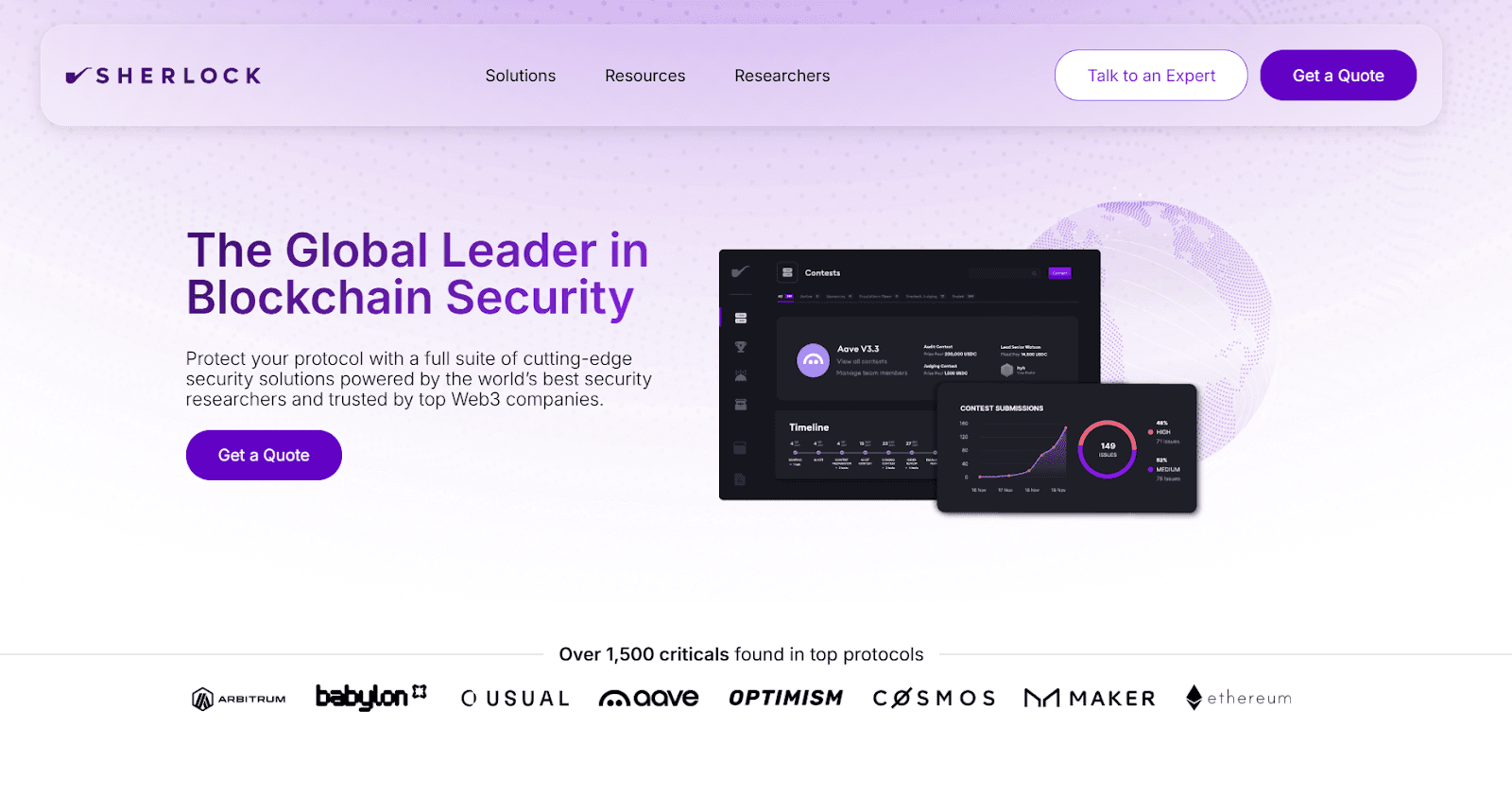 Sherlock.xyz is a leading, crowdsourced blockchain security platform offering contest-based smart contract audits, financial coverage for critical issues, bug bounty programs, and collaborative audits. With a strong emphasis on transparency, financial alignment, and measurable outcomes.